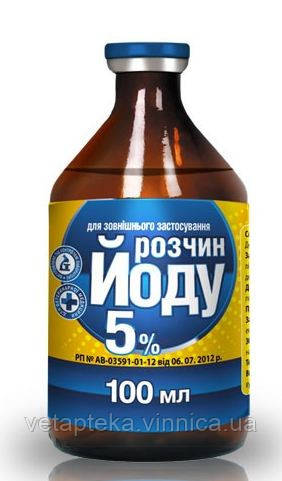 Розчин йоду – антисептичний, подразнюючий, відволікаючий засіб. Має широкий спектр антибактеріальної дії по відношенню до Staphylococcus spp., Streptococcus spp., Neisseria spp., Escherichia coli, Shigella spp., Klebsiella spp., Proteus spp., Chlamydia, неспороутворюючих анаеробів, вірусів герпесу та вітряної віспи (Herpesviridae).